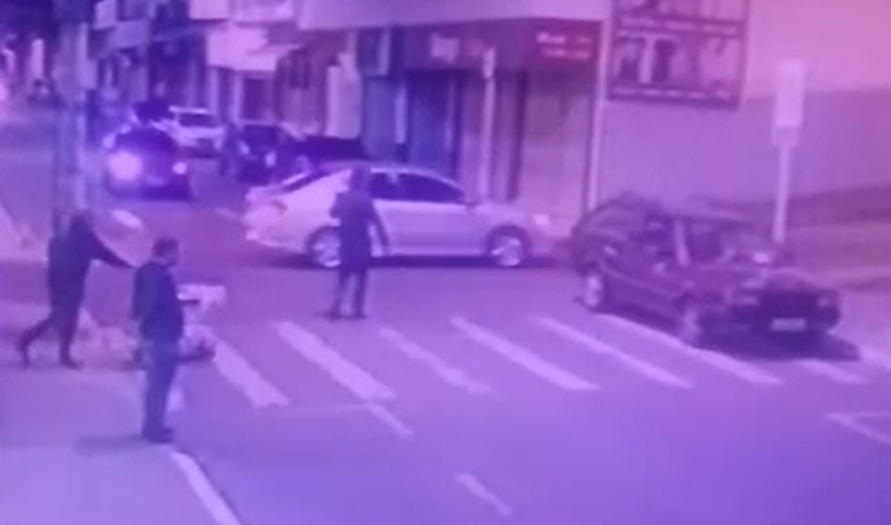 O pai e o bebê foram atropelados na faixa de pedestre, mas é possivel ver que um VW Parati faz manobra em cima da faixa de pedestre para subir a rua Visconde do Rio Branco, impedindo a passagem do pai com o bebê. O Ford KA vem pela rua Amando em alta velocidade e bate, lança o pai ao alto e joga o bebê no asfalto.