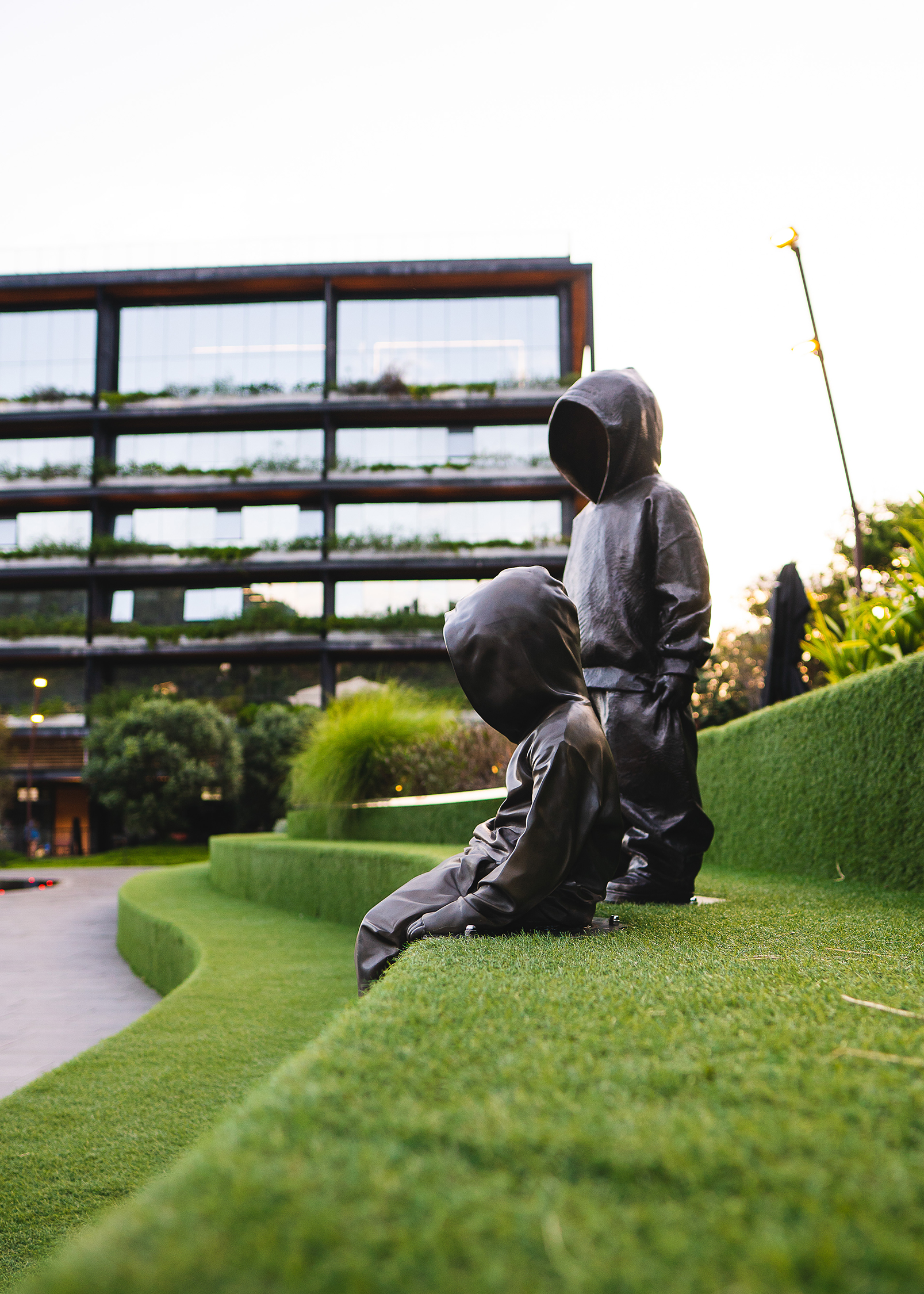 – Mockingbird e Topdog, 2020, de Huang Yulong – duas obras em bronze que combinam tradição oriental, simbolismo e estética hip-hop. Bacharel em escultura artística, Huang nasceu em 1983 na província de Anhui, na China, e está entre os principais artistas contemporâneos chineses da atualidade. Atualmente, mora e trabalha em Pequim. A escultura Mockingbird, de pé, tem as dimensões 103X49X47cm, e a escultura Topdog, sentado, mede 80X50X30cm.