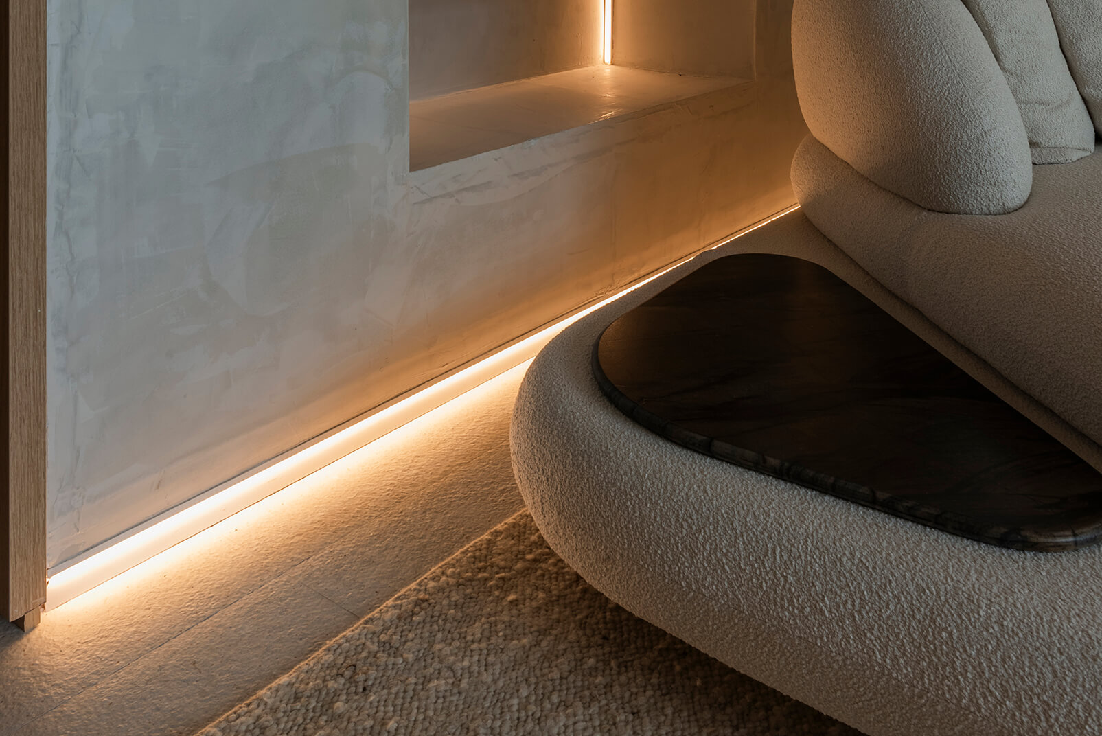 Os rodapés da linha Neo representam uma solução metálica que cria um efeito de ilusão de ótica, simulando a aparência de um espelho flutuante, e adicionam leveza aos projetos arquitetônicos. Outra característica é que este design possibilita a instalação de fitas de LED sem contato direto com o espelho, protegendo suas bordas da luz. “O rodapé invertido permite um contorno iluminado nos espelhos, sem perda de garantia e qualidade. A combinação dos rodapés da Santa Luzia com este recurso resulta em uma solução pronta”, explica Viviane Moscoso, gerente de produtos da VIVIX.