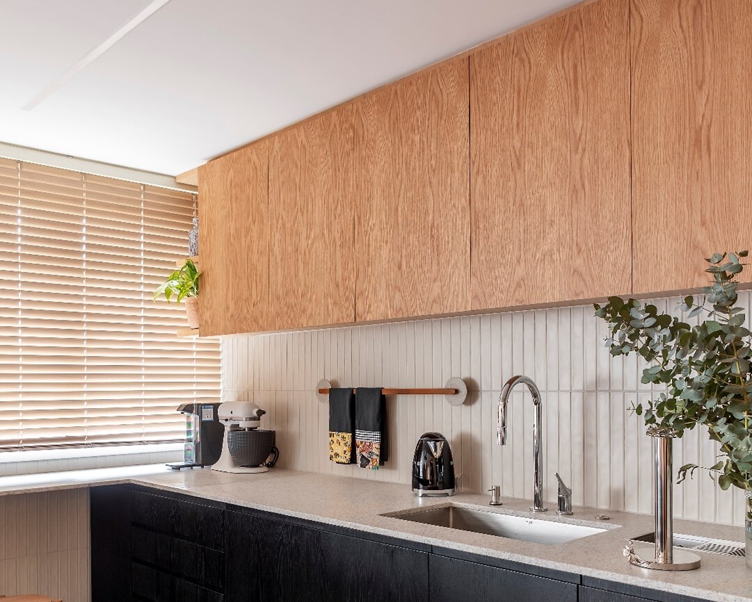 “A aplicação do revestimento cerâmico Make WH NAT, da Portinari, da maneira que especifiquei deu ainda mais unidade ao projeto, atendendo ao pedido de espaços que fossem o mais integrado possível e com muita personalidade”, finaliza.