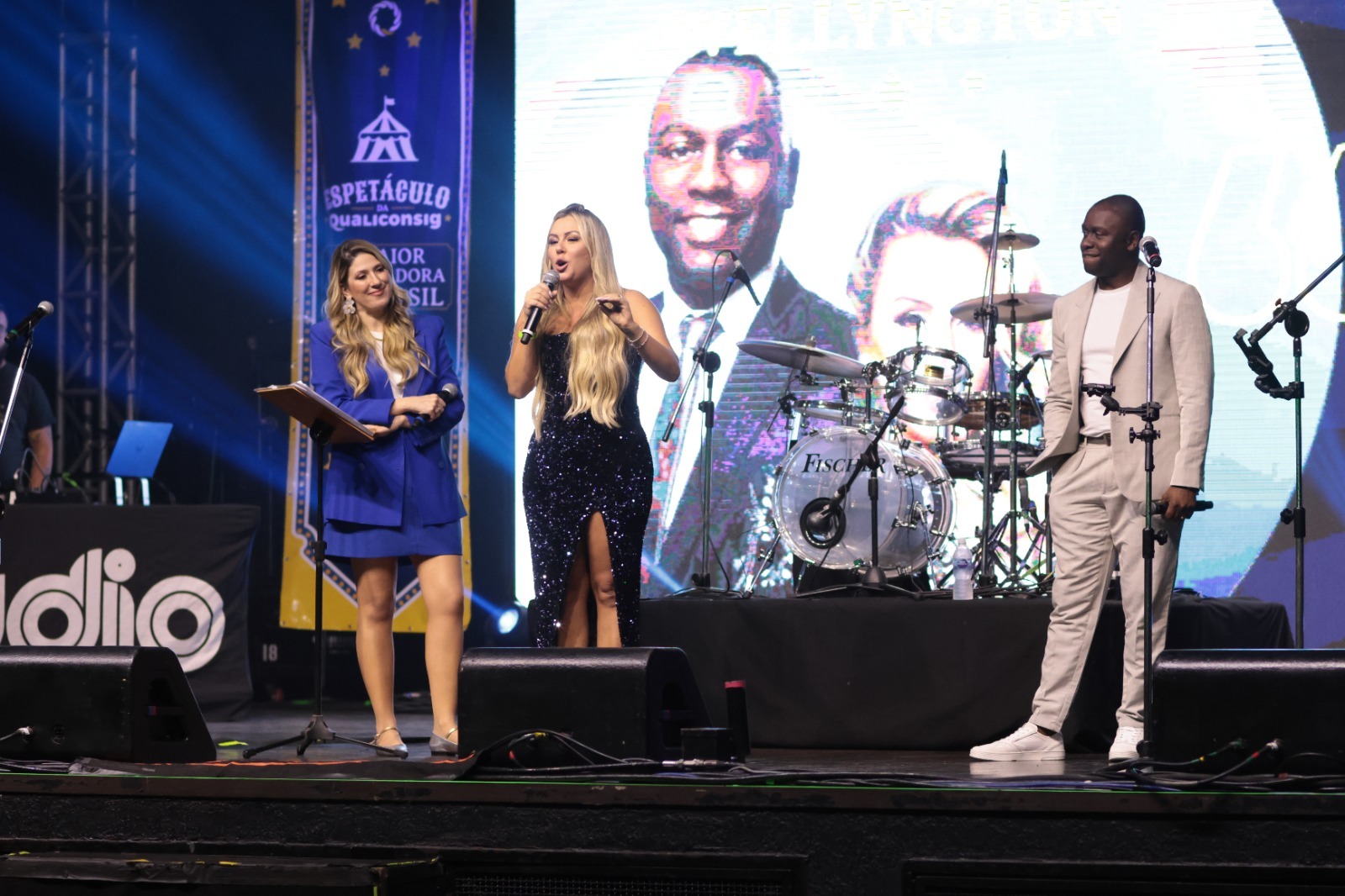 Durante o evento, que reuniu colaboradores, amigos e parceiros bancários, o Grupo Qualiconsig anunciou uma produção de 1,9 bilhões de reais. Dani Calabresa, em tom humorístico, brincou sobre seu cachê, comparando a celebração ao “Oscar do consignado” e criando um ambiente descontraído.