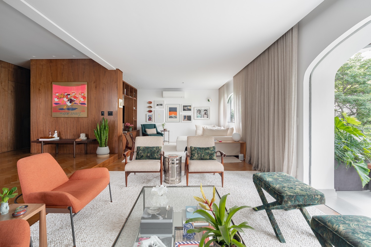 O movimento mais fluido e orgânico também segue sendo uma aposta de alguns arquitetos. Para os sócios do Estúdio Pluri, a presença de linhas orgânicas, não apenas nos mobiliários, mas também na arquitetura e marcenaria, criam formas suaves e fluidas.