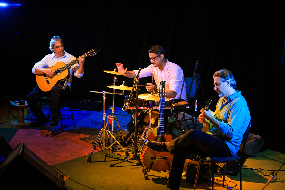 O Trio Baru reúne artistas cujo caminho profissional se entrelaça com a história da música instrumental brasileira desde os anos 1980. O violonista João Bosco Oliveira, natural de Brasília, é reconhecido por seu trabalho voltado à música flamenca. O paulistano Nelson Latif (violão e cavaquinho) tem no Choro sua principal inspiração e transita entre a Europa e o Brasil, além de se envolver em diversos projetos socioeducativos. Já o carioca Sandro Alves é percussionista e combina ritmos tradicionais com influências contemporâneas, atuando em diversas iniciativas paralelas.