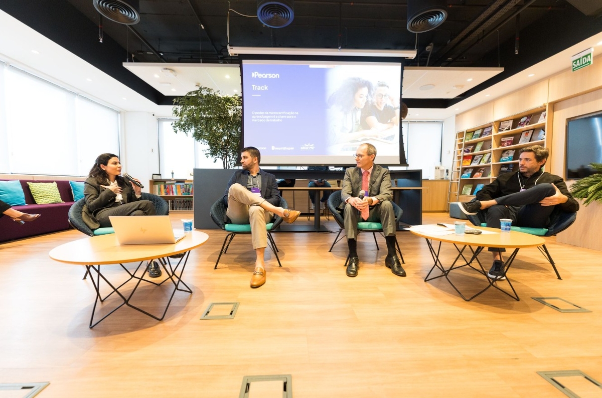 No escritório da Pearson High Educacion, em São Paulo, especialistas da educação e do mercado se reuniram para a mesa-redonda “O poder da microcertificação na aprendizagem como chave para o mercado de trabalho”. O debate trouxe diferentes perspectivas sobre como o ensino prático, as microcertificações e a tecnologia podem preparar estudantes e profissionais para um mercado em constante transformação. O encontro marcou também o lançamento do TRACK, solução que transforma a Biblioteca Virtual da Pearson em uma plataforma dinâmica, combinando inteligência artificial, trilhas personalizadas e certificações reconhecidas pelo mercado.