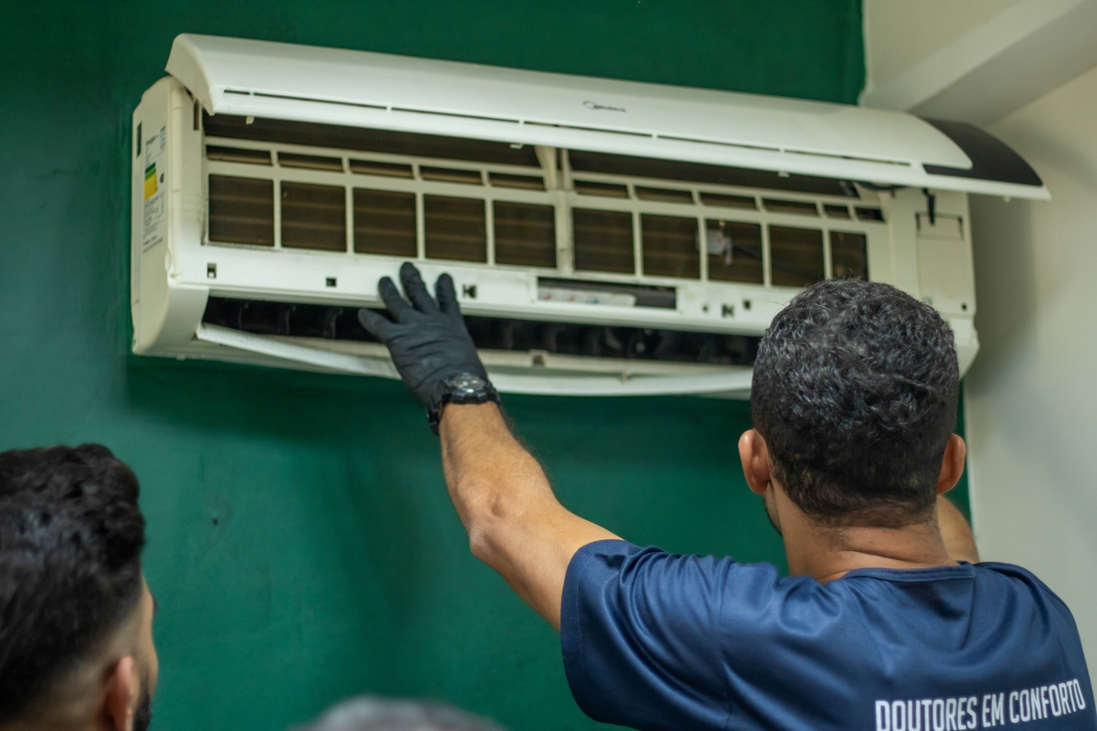 “Primeiramente, o técnico testa o aparelho para verificar se está em bom funcionamento. Depois, desconecta o ar-condicionado da tomada, remove sua tampa e os filtros”, descreve. “Em seguida, o profissional coloca a lona ao redor do local do serviço, junto com o coletor e galão, e conecta a mangueira na saída de resíduo e na saída de água”, completa.