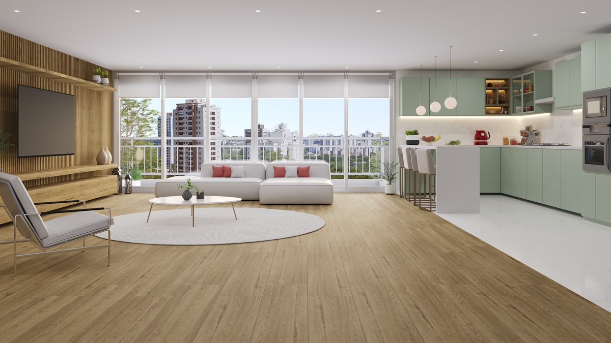 Além dos ripados, pisos laminados e vinílicos também são opções recorrentes nas reformas rápidas. Para Adriana Zikan, a preferência está ligada ao modo de instalação: “Por dispensarem grandes intervenções e terem instalação simplificada, esses produtos permitem renovar áreas de circulação, salas e quartos sem a necessidade de quebrar revestimentos antigos, além do tempo otimizado de instalação”, explica. “Os rodapés, também disponíveis em diferentes alturas e padrões, trazem o acabamento final ao ambiente, totalmente renovado, de forma duradoura, e em pouco tempo”, completa.
