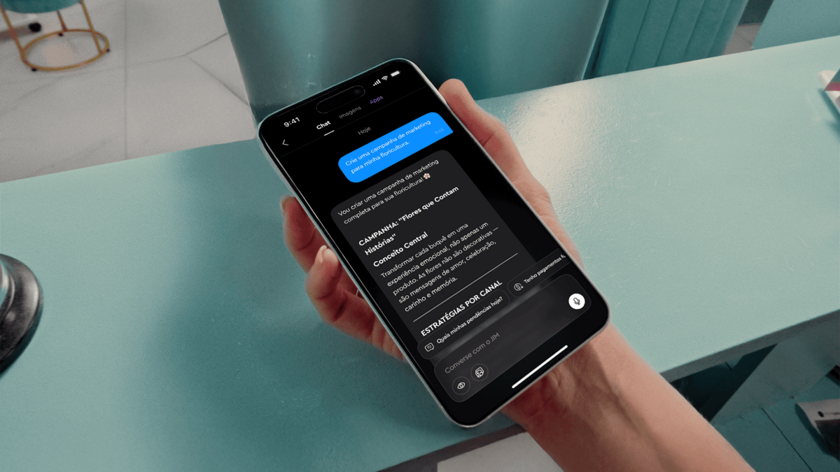 A ferramenta de criação de imagens vem ganhando cada vez mais tração dentro da plataforma, ajudando empreendedores a expor seus produtos e seu negócio em canais de comunicação. O JIM estrutura campanhas completas, sugere legendas, desenha estratégias para WhatsApp e adapta a comunicação para diferentes redes sociais.