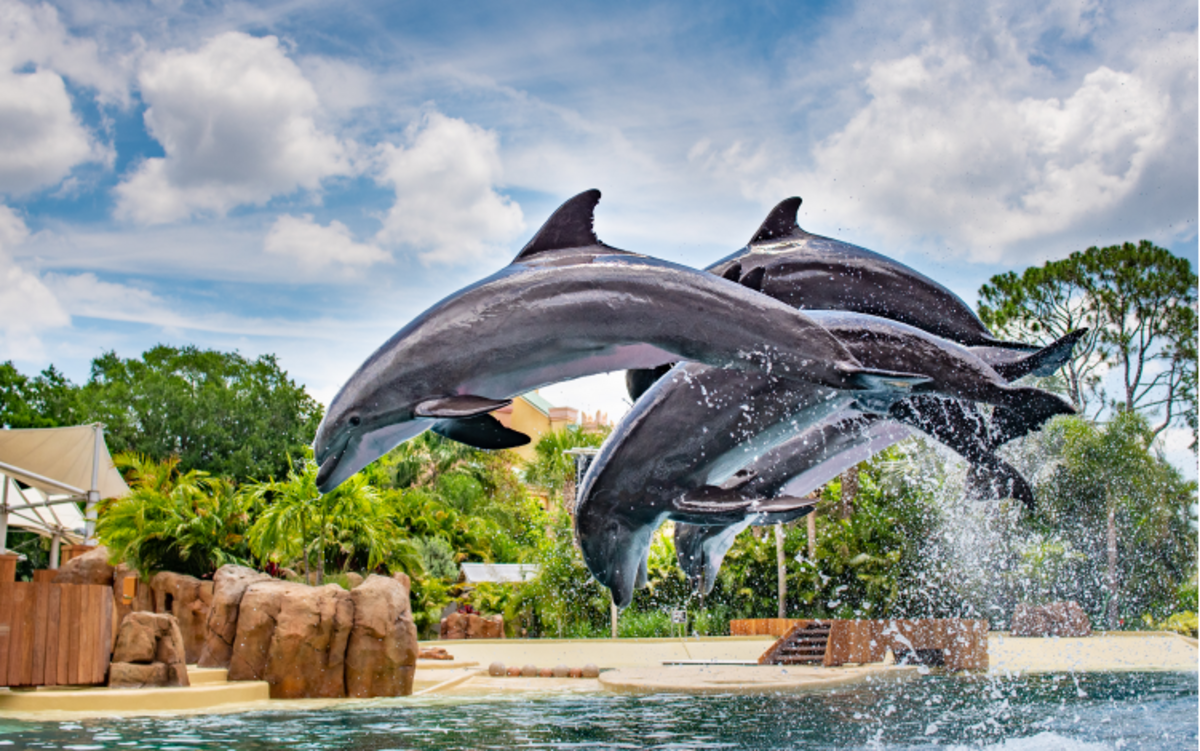 O SeaWorld Orlando reúne atrações voltadas ao entretenimento e à educação ambiental, com foco na vida marinha. Entre elas, estão o show com golfinhos, a montanha-russa Pipeline com temática de surf, e a Mako, conhecida por sua velocidade. O Busch Gardens Tampa combina montanhas-russas radicais como a Iron Gwazi com áreas de observação de animais, incluindo espécies como girafa, guepardo e zebra, além de experiências em safáris. Já o Aquatica concentra estruturas aquáticas como toboáguas, piscinas com correnteza, praias artificiais e espaços voltados também ao público infantil.