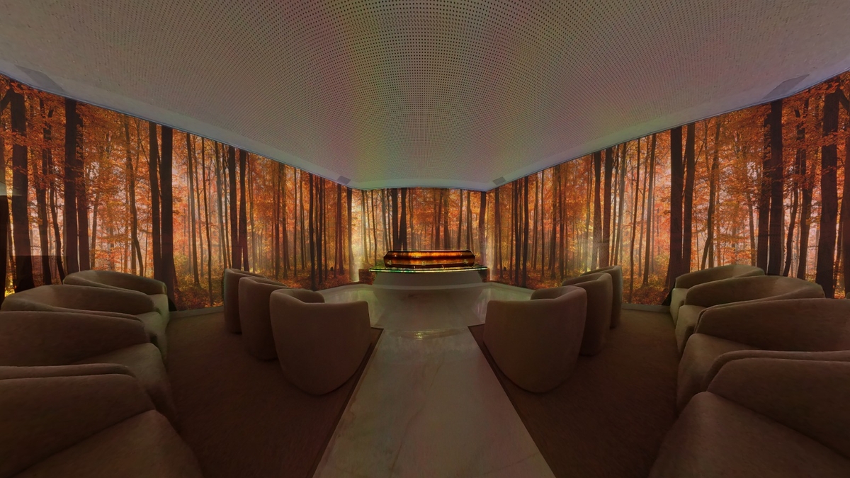 - Sala imersiva: espaço com projeção em 360 graus, música ambiente e experiência multisensorial para a última homenagem;