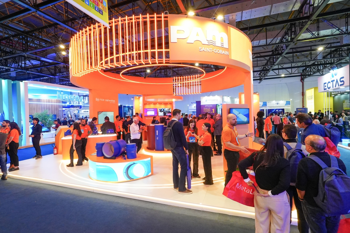 A PAM Saint-Gobain Brasil apresentou soluções tecnológicas voltadas para eficiência e sustentabilidade no setor de saneamento durante a FENASAN 2025 e foi reconhecida com o prêmio de Melhor Estande pelo design, interatividade e experiência proporcionada aos visitantes.