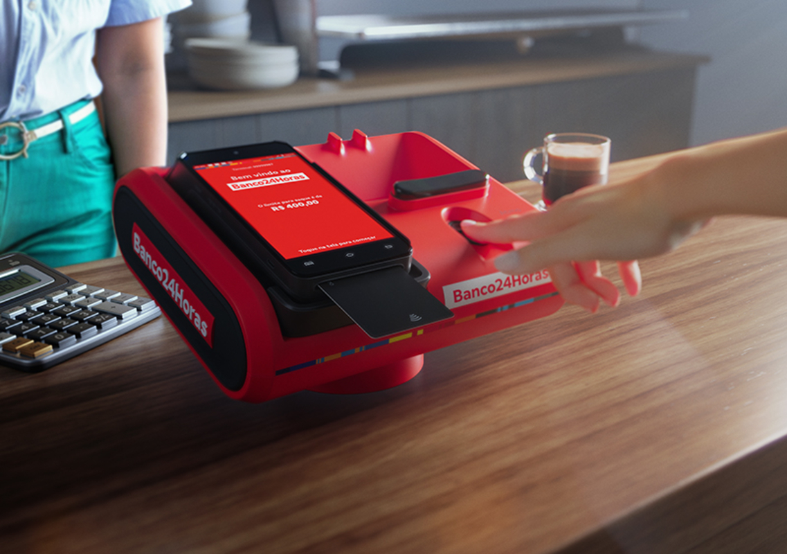 Desenvolvido com foco na inclusão financeira, o Banco24Horas compacto, também conhecido como Atmo, é um dispositivo equipado com POS multibiométrico, instalado em estabelecimentos comerciais, como mercados, farmácias e postos de combustíveis.
