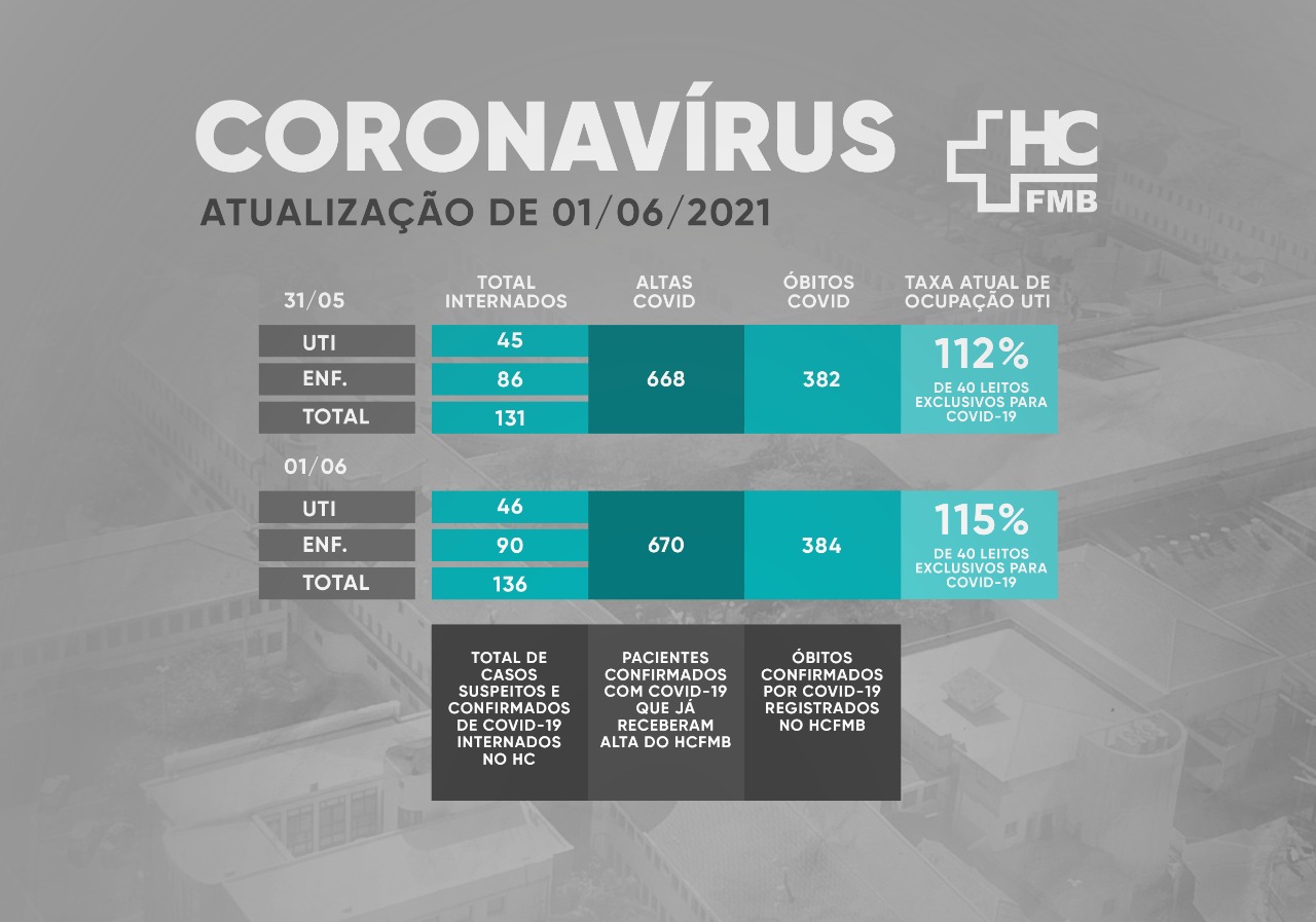 De acordo com divulgado pela assessoria do HC, a unidade hospitalar conta com 40 vagas exclusivas de UTI Covid e, nesta terça-feira, 01, são 46 pacientes que precisam de atendimento da Unidade de Terapia Intensiva, ocasionando superlotação do local.
