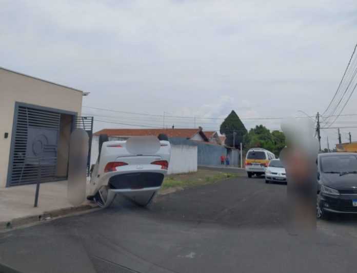 Uma mulher, ao olhar sua filha no banco de trás, colidiu com um carro estacionado enquanto dirigia pela rua Francisco Martins Costa. O impacto resultou no capotamento do veículo.