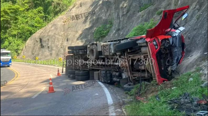 De acordo com a Artesp, o veículo seguia na pista sentido leste quando o motorista adormeceu ao volante. A carreta acabou tombando pela faixa adicional do sentido oeste, espalhando a carga pela pista.