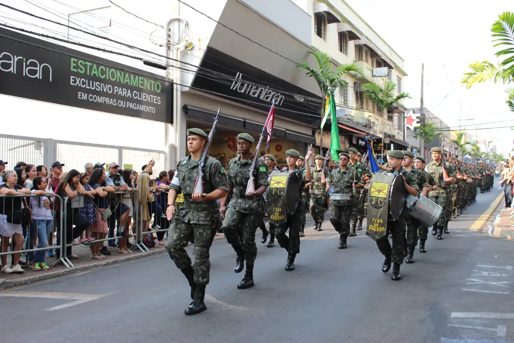 O Tiro de Guerra 02-048 abrirá o Desfile, seguido da Polícia Militar, Corpo de Bombeiros, Polícia Civil, Guarda Civil Municipal e SAMU. Na sequência, desfilam a Banda Sinfônica Municipal, além de escolas e demais entidades.