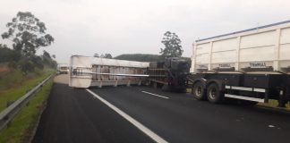Botucatu: Carreta com adubo tomba na Castelinho e parte da carga...