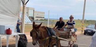 Botucatu: De charrete, casal de idosos passa pelo “drive” para receber...