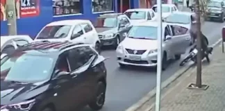 Motociclista sofre acidente após porta de carro ser aberta repentinamente em...