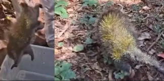Vigilância Ambiental resgata ouriço-cacheiro em quintal de residência em Botucatu