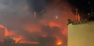 Caminhão é destruído por incêndio no Jardim Monte Mor em Botucatu