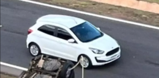 Carro capota no acesso ao Shopping Botucatu, na Rodovia Castelinho
