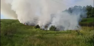 Incêndio atinge área de vegetação próxima à Cascata da Marta em...