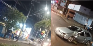Carro colide com árvore e fica destruído em acidente na Avenida...
