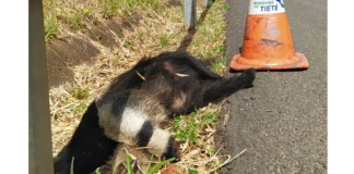 Tamanduá-bandeira é atropelado e morre na Rodovia Marechal Rondon, em Botucatu