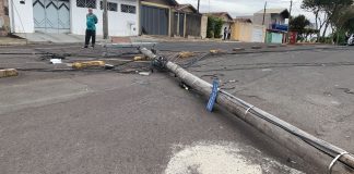 Botucatu: Caminhão enrosca em cabos e quebra poste em Avenida