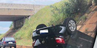 Botucatu: Carro capota na alça de acesso da Castelinho