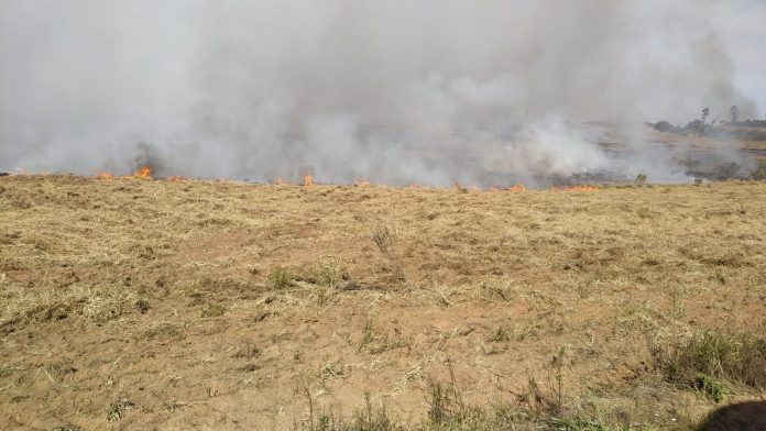 De acordo com os bombeiros, é uma grande área, aparentemente utilizada para pastagem. Há muita fumaça na Rodovia e próximo da pista, na entrada do bairro rural Toledo.
