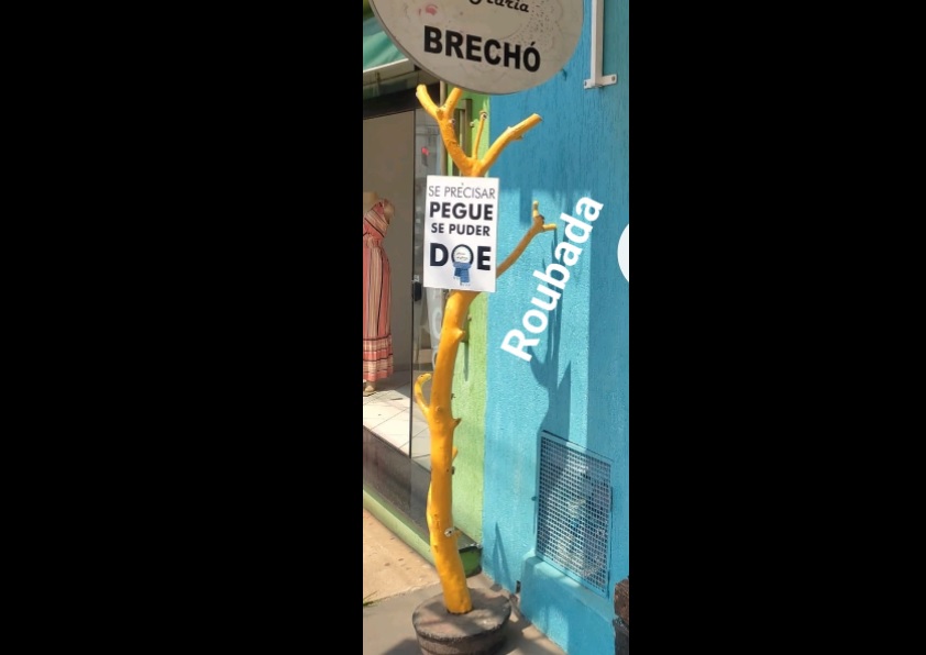 A Árvore, que era uma espécie de cabide, para que as pessoas colocassem roupas, cobertores ou sapatos para serem doados para quem precisasse pudesse pegar, foi levada do local. Nem mesmo a placa foi deixada. “Boa tarde, roubaram hoje nossa árvore solidária em frente a nossa loja, quem passava em frente sempre via cheia de doações, se alguém viu alguém com ela por aí favor me avise, pois ela foi feita para abençoar os moradores de rua e outras pessoas que estivessem precisando”, divulgou o brechó.