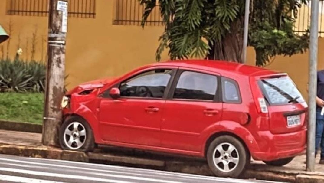 Na região central da Cidade, na Avenida Santana, o motorista perdeu o controle do seu veículo, subiu na calçada e bateu em um poste.