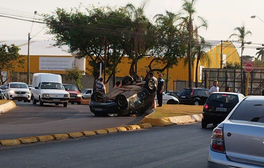 Por volta das 17h, um veículo capotou na rotatória do Campo do Inca, na Vila Paulista, após a colisão com outro veículo.