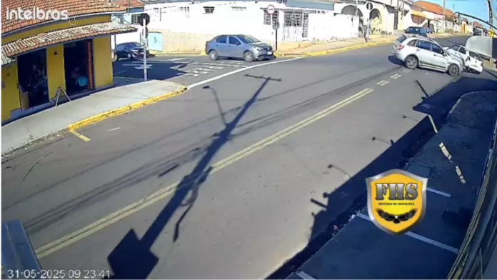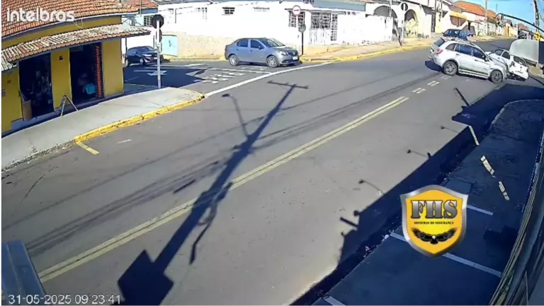 A gravação, registrada por câmeras da empresa FHS Sistemas de Segurança, circulou nas redes sociais nesta semana e mostra o momento exato em que os veículos se chocam no cruzamento. Apesar do impacto, não houve registro de feridos graves, segundo informações apuradas no local.