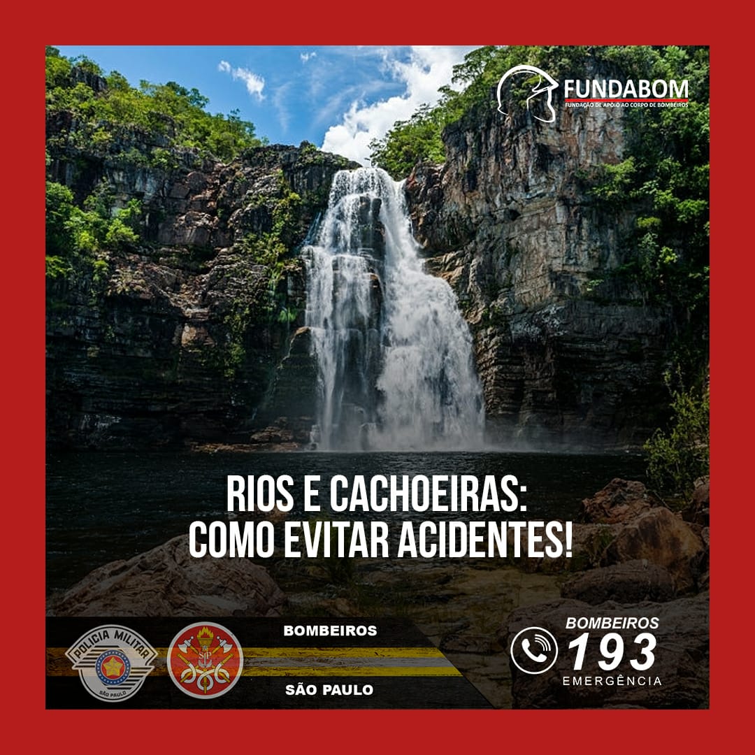 • Se estiver em rios ou cachoeiras, fique atento ao perceber que o volume de água está aumentando, mudando de coloração ou de velocidade…Pode ser uma cabeça D’água, que é uma enchente repentina que pode arrastar e afogar os banhistas…. Saia imediatamente e procure um local mais alto para se proteger.