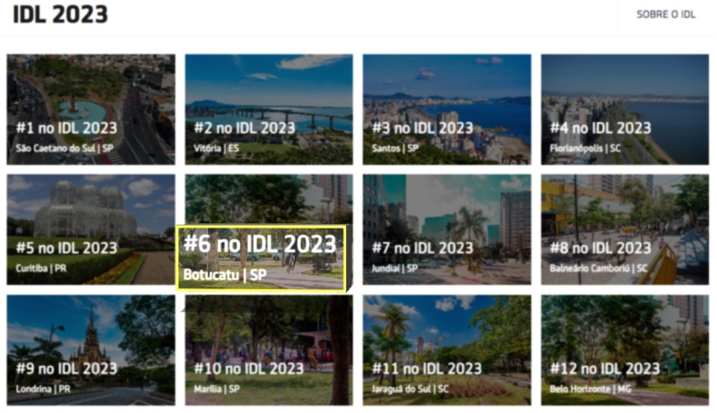 A frente de Botucatu no ranking estão as cidades: 1º São Caetano do Sul-SP, 2º Vitória-ES, 3º Santos-SP, 4º Florianópolis-SC, e Curitiba-PR.