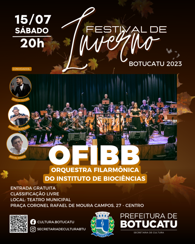 Neste sábado, 15, o Festival de Inverno 2023 traz um Concerto da Orquestra Filarmônica do Instituto de Biociências – OFIBB. Uma apresentação clássica repleta de talento e emoção.