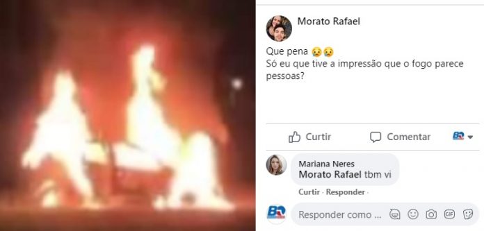 “Só eu que tive a impressão que o fogo parece pessoas?”, questionou Rafael Morato. Uma outra leitora concordou com ele. “Também vi”, disse Mariana Neres.