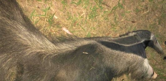 Botucatu: Mais um tamanduá-bandeira morre após ser atropelado na Gastão Dal Farra