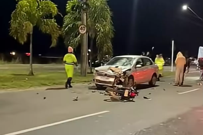 Um acidente envolvendo um carro e uma motocicleta foi registrado na noite de quarta-feira (25) na Avenida Marginal, via de grande fluxo que dá acesso ao Shopping Botucatu.