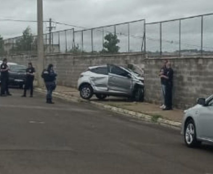 De acordo com testemunhas, uma mulher sofreu um mal súbito, perdeu o controle da direção e colidiu contra um muro.