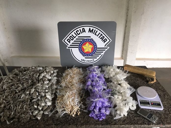 Com os criminosos foram apreendidas 8.600 porções entre crack, maconha e cocaína, dois tabletes de maconha, além de duas balanças de precisão, um celular, vários papéis com anotações e R$ 720,00 em espécie.