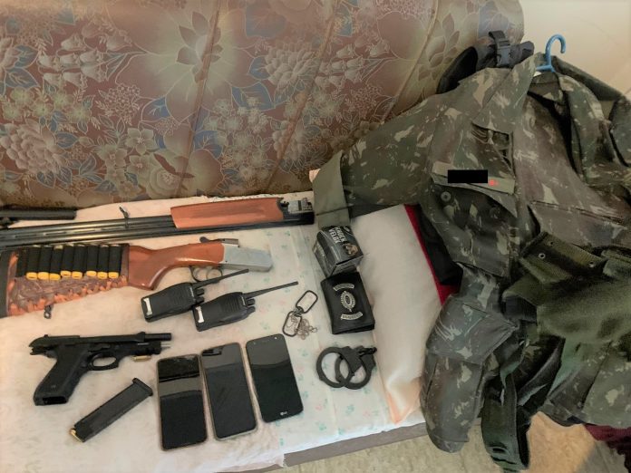 O homem de 42 anos foi conduzido à Delegacia e foi elaborado Boletim de Ocorrência por Usurpação de Função Pública. As armas, objetos e vestimentas foram apreendidos pela Polícia.