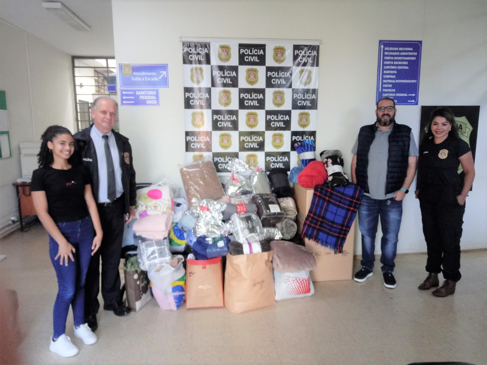 Nesta semana, iniciando a campanha, o delegado seccional recebeu os cobertores doados pelos moradores do Residencial Hípica, arrecadados na Festa Junina Solidária, que foram entregues pelo Diretor Presidente da Associação de Moradores do condomínio residencial, Geremias Rodrigues Torres Bonini.