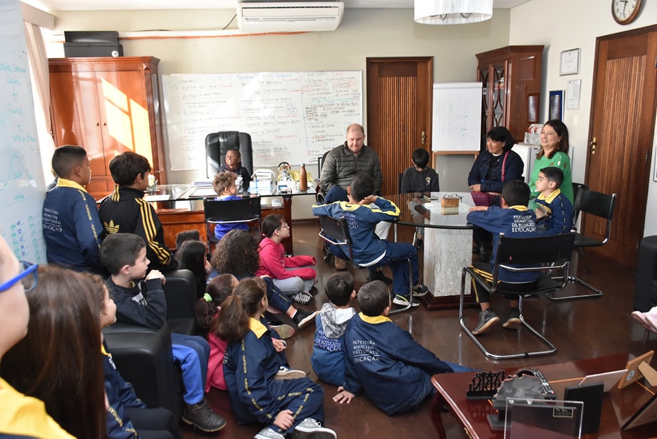 O Prefeito de Botucatu, Mário Pardini, recebeu nesta segunda-feira, 03, em seu gabinete, crianças do Ensino Fundamental I da Escola de Vitoriana.