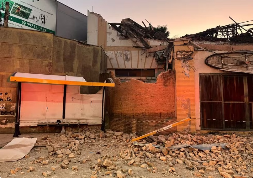 A fachada de um prédio localizado em frente a um ponto de ônibus no Centro de Botucatu desabou e atingiu pessoas, no fim da tarde desta terça-feira (24).