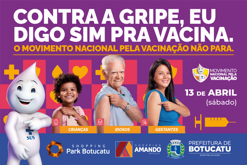 Na ação também terá vacinação contra a Covid 19 e todas as demais vacinas disponibilizadas pelo SUS. A Campanha será realizada no Shopping Park Botucatu, Shopping Amando e Todas as Unidades de Saúde de Botucatu.