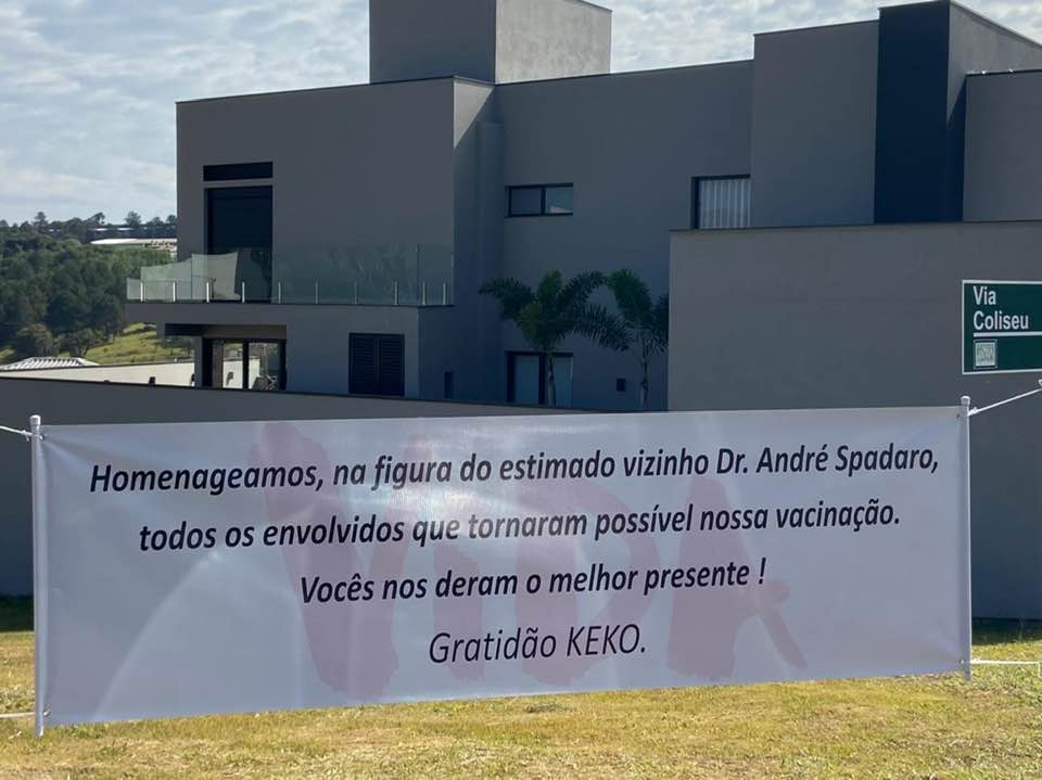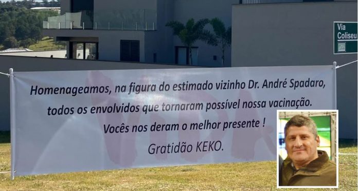 “Homenageamos, na figura do estimado vizinho Dr. André Spadaro, todos os envolvidos que tornaram possível nossa vacinação. Vocês nos deram o melhor presente! Gratidão Keko”.