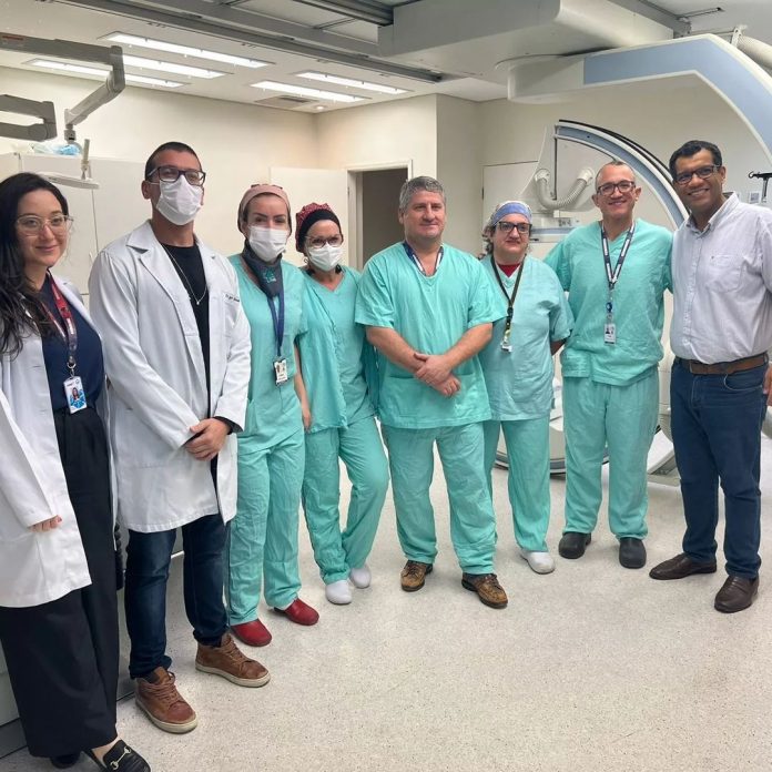 Com o diagnóstico identificado através de um ecocardiograma, a equipe optou pela embolização septal com ônix, uma técnica nova, inovadora e até então realizada duas vezes no Brasil: uma no Espírito Santo, em 2021; e no Rio Grande do Sul, em 2022.